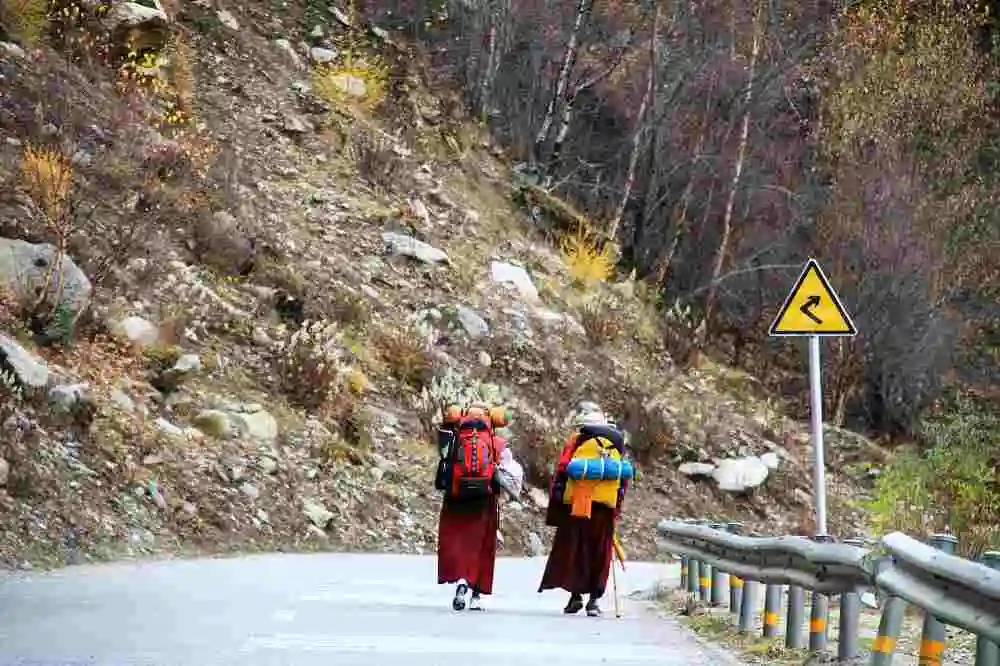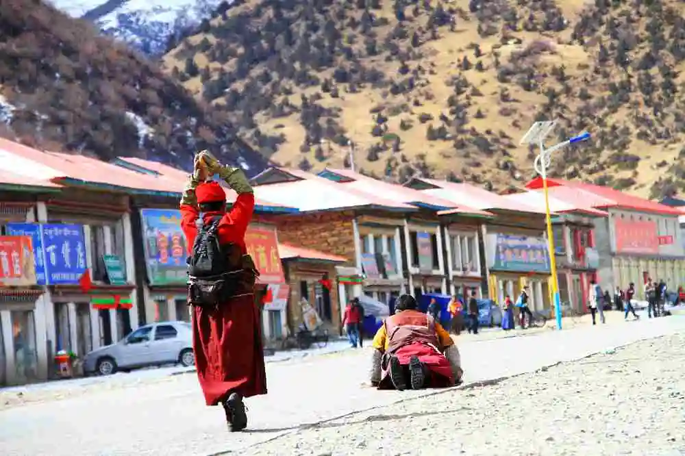 等身长拜:在每一条通向圣地拉萨的大路上,几乎都能看到磕着长头前往拉萨大昭寺的朝圣者,这些口诵六字真言、三步一拜、每拜必五体投地的伏身叩拜者们孤独前行,同一个动作,做了一年又一年,你也无法想象他们是怎样在雪地、泥泞之中亲吻着大地。心中若是充满了信念,那么何等艰险旅途,都最终会被抛在身后......