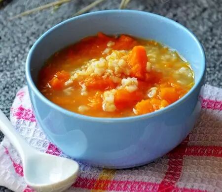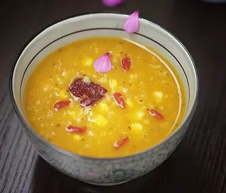食材:小米10g、大米10g、玉米20g、南瓜250g、红枣适量、枸杞适量