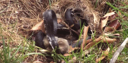 视频开始是一家人录到了一条蛇正在一窝兔子里,其中一只小兔子已经被蛇杀死了。