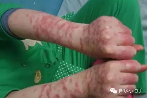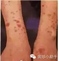 亚急性皮肤型红斑狼疮,临床上较少见,是一种特殊的中间类型。皮肤损害有两种,一种是环状红斑型,为单个或多个散在的红斑,呈环状、半环状或多环状,暗红色边缘稍水肿隆起,外缘有红晕,中央消退后留有色素沉着和毛细血管扩张,好发于面部及躯干;另一个类型是丘疹鳞屑型,皮损表现类似银屑病,为红斑、丘疹及斑片。表面有明显鳞屑,主要分布于躯干上肢和面部。两种皮损多数病例单独存在,少数可同时存在。皮损常反复发作,绝大多数患者均有内脏损害,但严重者很少,主要症状为关节痛、肌肉痛、反复低热,少数有肾炎、血液系统改变。