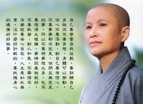 像这样的例子,在慈济俯拾即是。许多人受证严法师的感召,纷纷来慈济义务工作。但是法师不鼓励人一定要出家,在她心目当中,做事修心不一定要形象化,而是以出世的心做入世的事才是真出家。