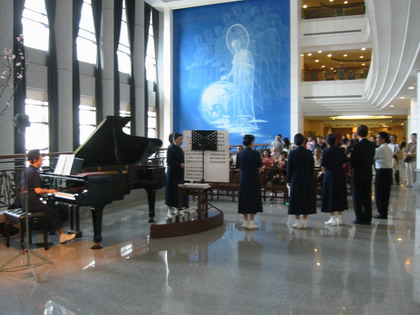 大厅内有钢琴表演、民乐表演、慈济志工的演唱,给人们带来温馨和欢乐。也许在看病前,病人的痛苦就减轻一半了。