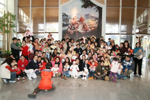 证严法师与佛教慈济基金会部分志工欢聚一堂。