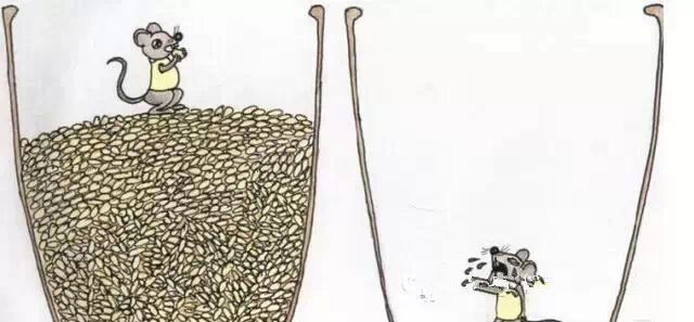 1、一只老鼠掉进了半满的米缸,意外让它喜不自禁。确定没有危险后,它便开始了在米缸里吃了睡、睡了吃的生活。很快,米缸就要见底了,可它终究还是摆脱不了大米的诱惑,继续留在缸里。最后,米吃完了,它才发现,跳出去只是梦想,一切都无能为力了。