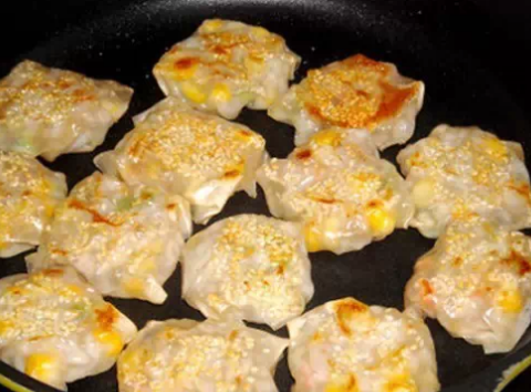 7.平底锅刷薄油,烧热,放入玉米饼,小火煎至两面金黄即可