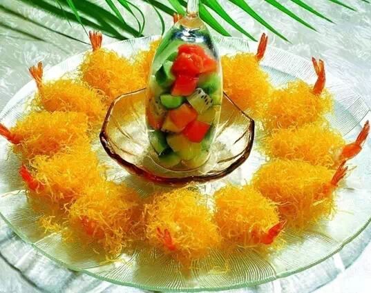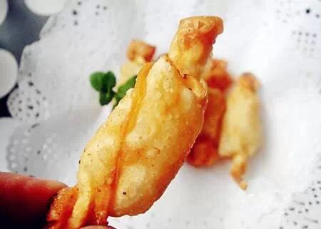 8.植物油锅烧热,下入虾球,炸至金色即可