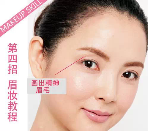1、极细的眉笔描绘出眉形,并将空缺的地方补齐。