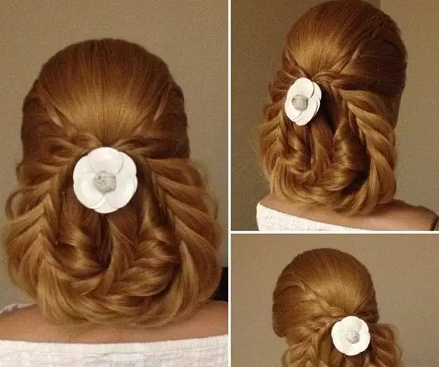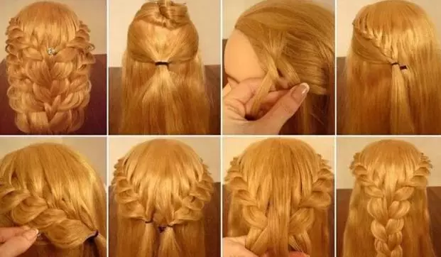 step3、将第一束头发梳理好后,再挑出一束头发,将其合并成一束,然后再按照同样的方法从小洞中穿过。