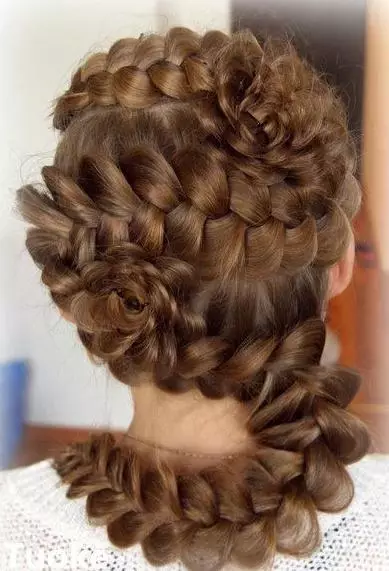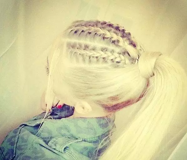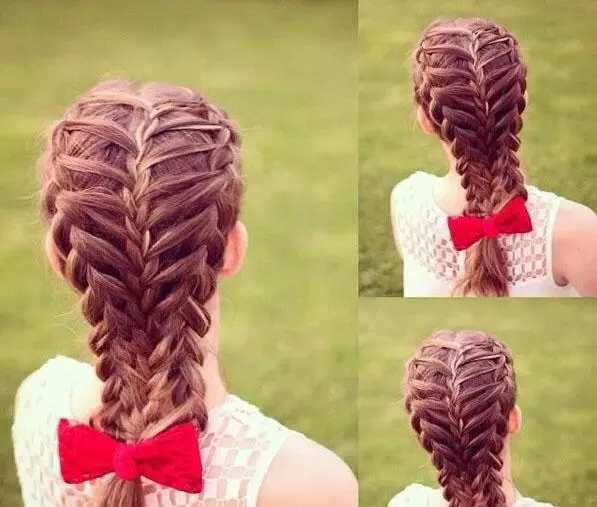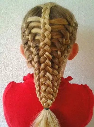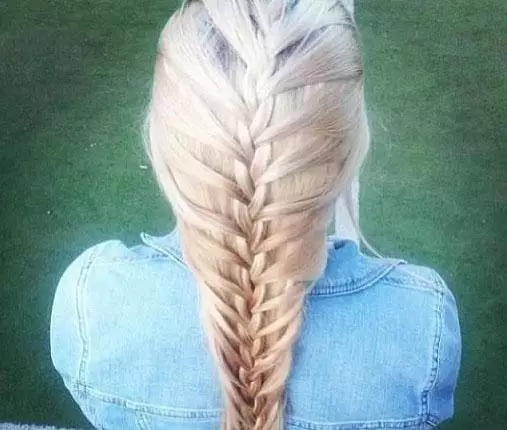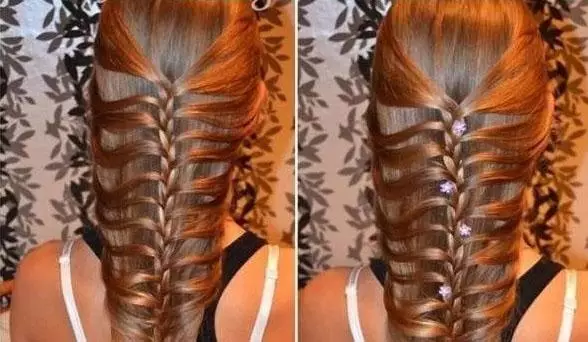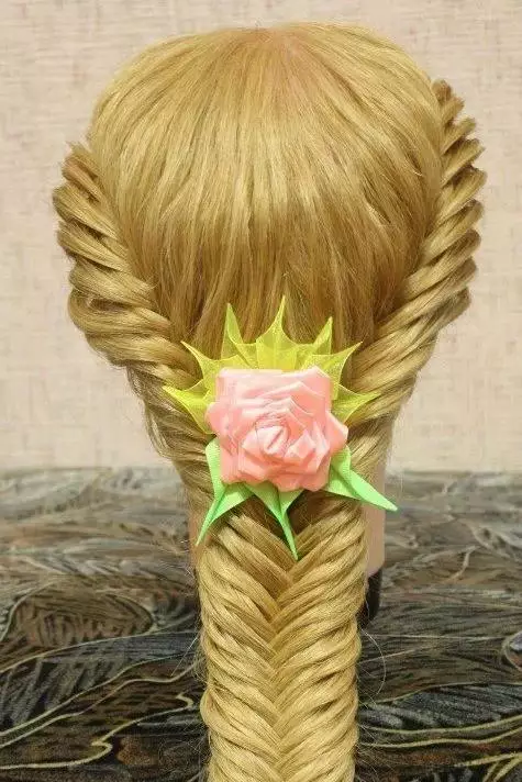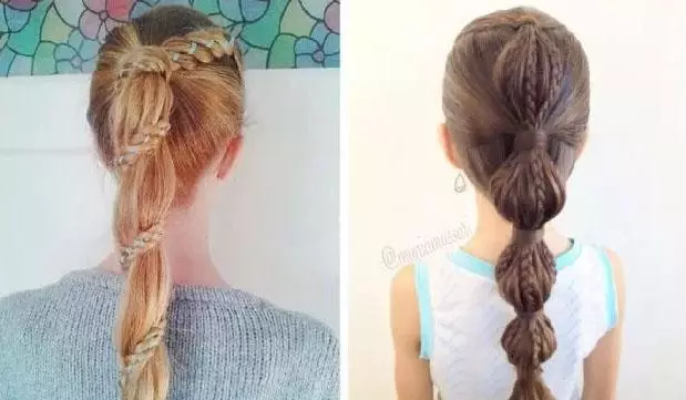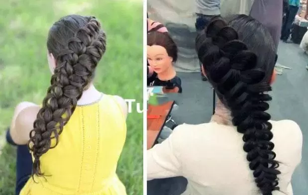step4、接着再用相同的方法,一路将马尾辫成发束,这样一直编到发尾,最后用橡皮筋将头发绑好即可。