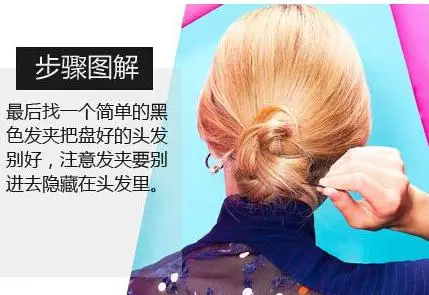 step4、最后找一个简单的黑色发夹把盘好的头发别好,注意发夹要别进去隐藏在头发里
