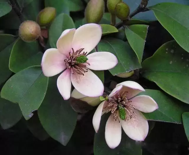 24、含笑:喜温暖湿润,属于半阴性花卉,要求通风良好适当荫蔽。空气湿度高,叶片颜色浓绿而有光滑。不耐干旱,忌烈日曝晒,否则叶片易变黄。喜肥、喜水但怕涝,不甚耐寒,喜肥沃疏松的微酸性沙土。有诗赞曰:“花开不张口,含羞又低头,拟似玉人笑,深情暗自流。”