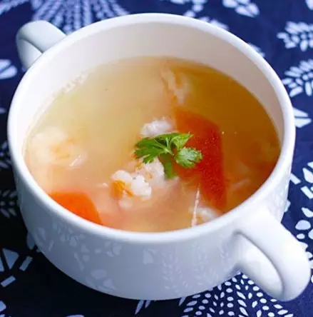 做法:1)虾仁剔去背部及腹部的黑线,洗净,挤去多余水。2)用厨师刀在头部横切,不切断,摊开。3)用刀尖在中间位置划个眼。4)将虾仁尾部从眼中穿过,成蝴蝶形。5)将虾仁全部处理好后,放入碗中,放少许盐、料酒,轻轻抓几下,腌制10分钟。6)西瓜皮削去翠绿的外皮,留白绿色带红的部分,切成菱形片,再横片成厚度1mm的片。7)锅中倒入适量水,烧开后放入西瓜皮片,煮2分钟左右至熟。8)放入腌好的虾球,略煮视变色后再煮30秒左右,放入鸡精、白胡椒粉、盐,淀粉加2大勺水搅成水淀粉,淋入锅中,轻轻搅匀。撇去白沫,放入香油、香菜,搅匀后即可盛出。