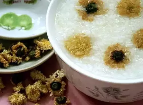 做法:将新鲜粳米100克熬粥,待粥将熟时放入菊花5~10克,再用文火煮5分钟左右即可。粥色鲜亮微黄,气味清香。菊花还具有散风热、清肝明目、解毒等功效,经常服用还可防治风热感冒、头痛眩晕、目赤肿痛等病,对高血压患者还有一定的降压效果。