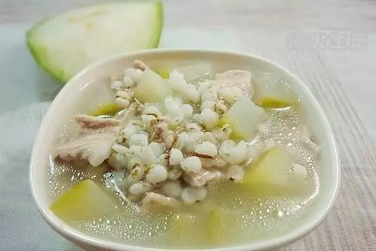 冬瓜是夏天适宜吃的凉性蔬菜,具有生津止渴,清热祛暑的功效。与大米和瘦肉同煮,能清热解毒、健脾利尿,兼有减肥的功效,适合暑热烦闷时食用。