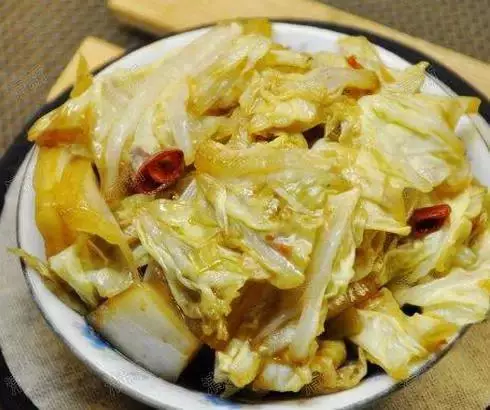 醋溜白菜原料:卷心菜750克,猪油60克,盐8克,白糖60克,味精4克,香醋3克,湿淀粉5克,葱花3克,干辣椒节4克,花椒2克。