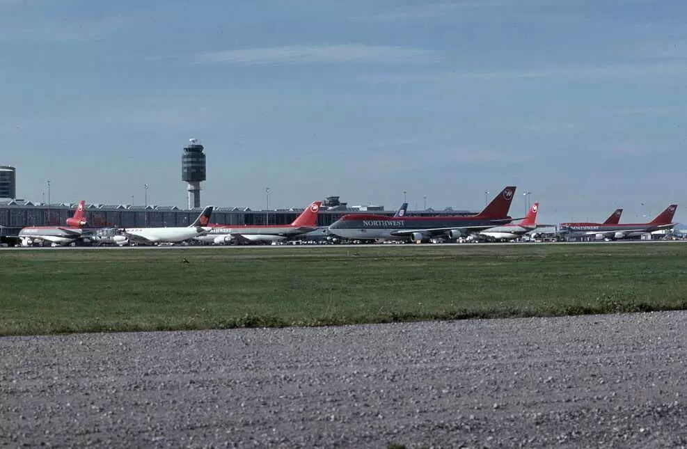 加拿大纽芬兰的甘德机场上同样停满了来自欧洲的航班,共计53架。