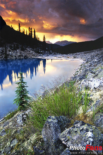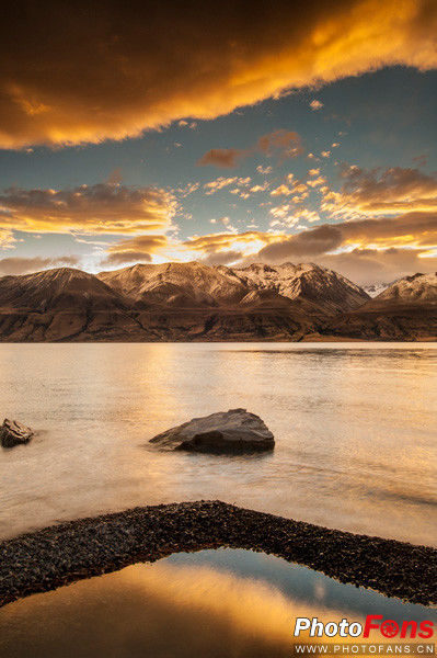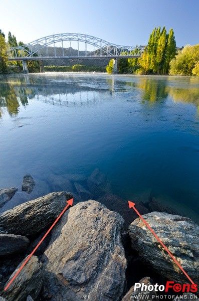 使用超广角镜头拍景,可以捕捉到完整壮阔的景色,若还想强调画面的视觉动态范围,采取竖构图并从高角度俯拍前景则是最好的呈现方式。利用脚架或手持的方式,让相机高于前景景物的高度,以俯瞰的角度拍摄,同时也应注意前中后景的画面占比。
