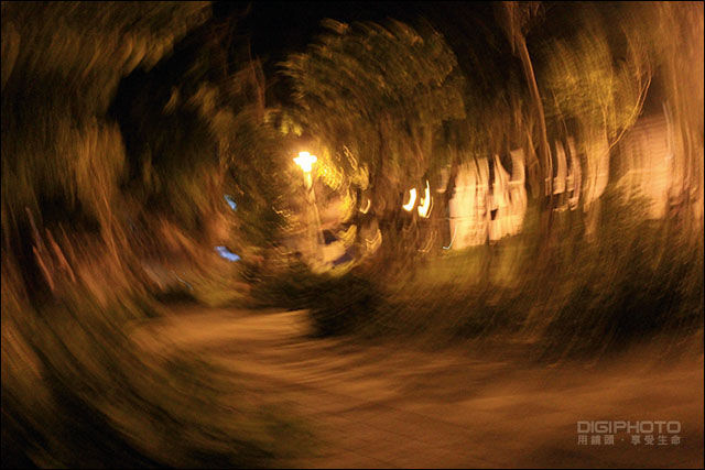 旋转相机,将公园的夜色化成一个迷人的漩涡。