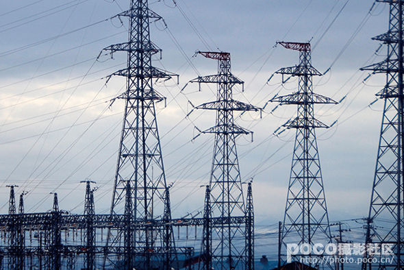 排列整齐的电塔,让影像呈现一种数大便是美的规律感