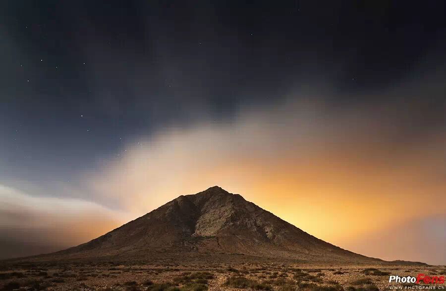 即使太阳完全落入了地平线,也不要急于离开拍摄场地,例如这幅作品中,天空被夕阳染成暖黄色,而地平线以上区域,由于未被太阳照射呈冷蓝色,使画面以天际线为分割, 形成了鲜明的色彩对比,画面极具视觉冲击效果。