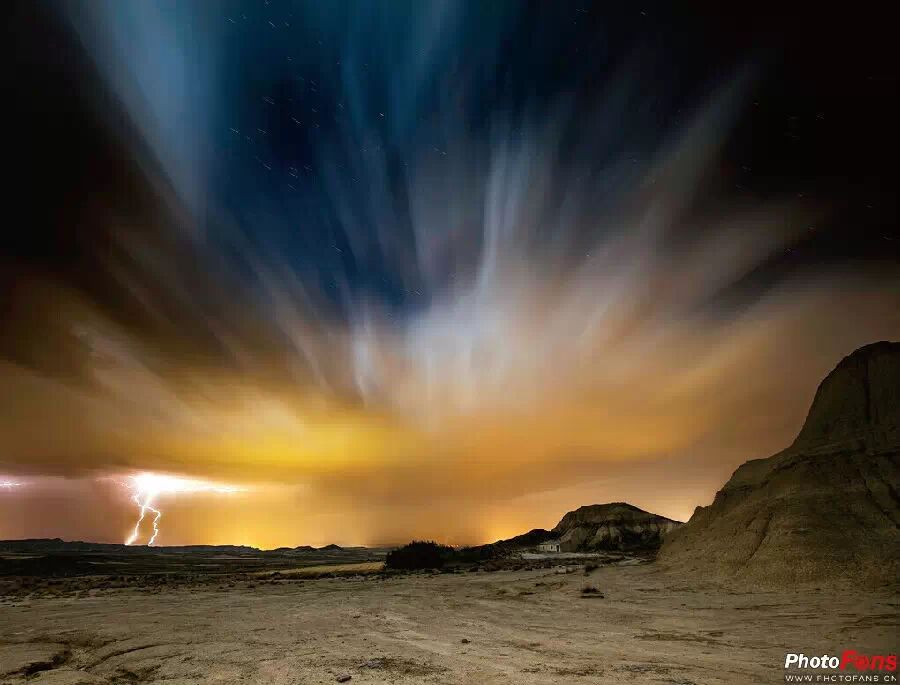使用更长一些时间拍摄的云彩流动效果,放射状的线条使画面更具动感与视觉张力。