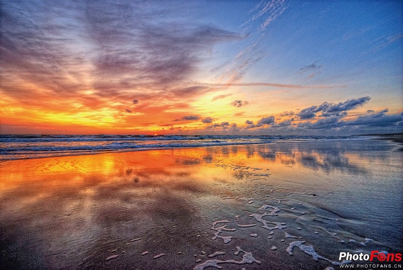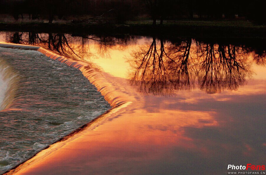 天空中的云霞与水中的倒影一虚一实,形成强烈的对比,以此来突显出云霞的美丽。