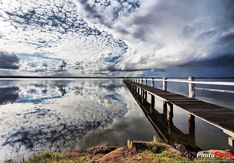 只拍摄云彩与水中倒影难免会显得有些单调,因此拍摄时可以加入桥梁、礁石、草地等作为陪体,不仅可以丰富画面,还可以使画面更生动。