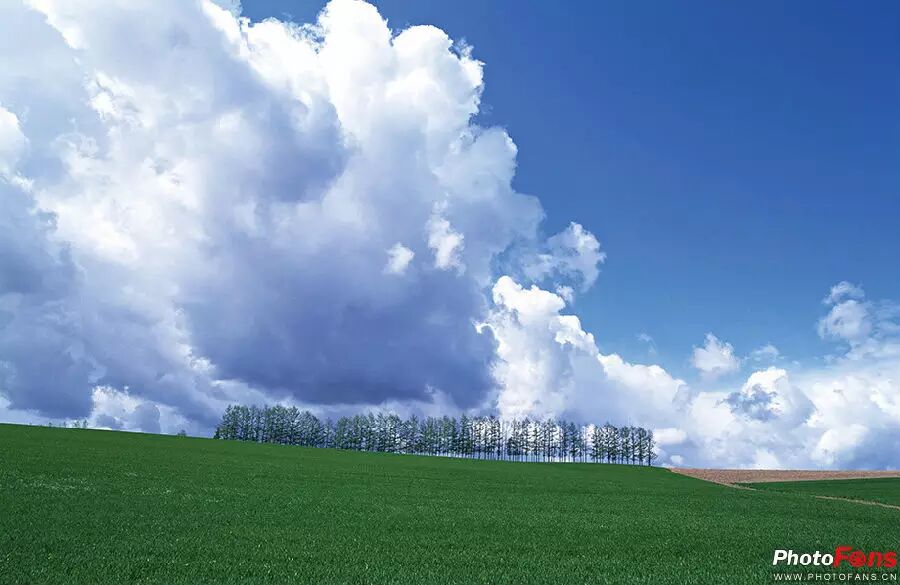 为了避免上述情况,拍摄时应该使用中灰渐变滤镜,并将渐变镜上较暗的一侧安排在画面中天空的部分,以减少天空、地面的亮度差异。