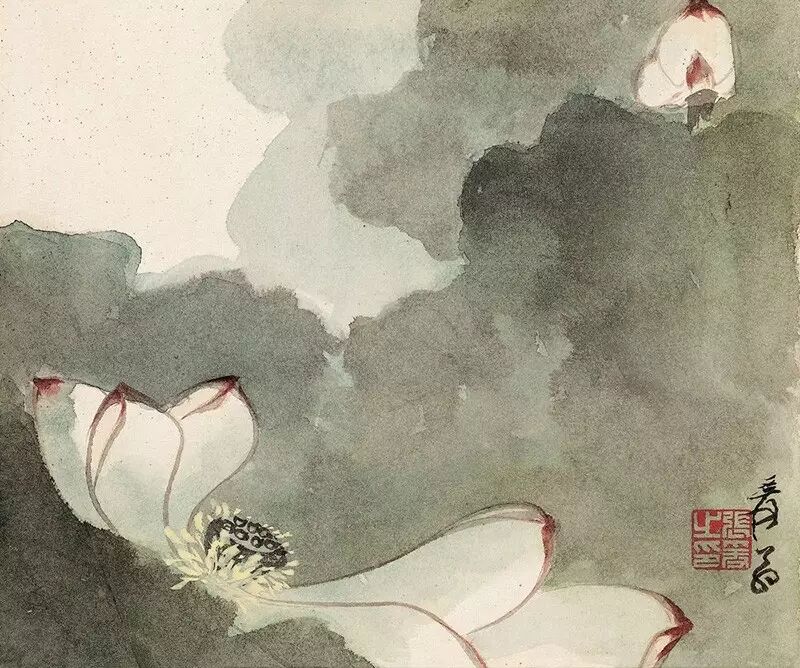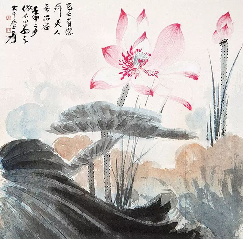 画荷,张大千极重荷干,