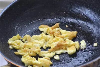 鸡蛋打散,倒入锅中炒至金黄色盛出。17