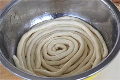 一层一层的盘在盆子里,盖上锅盖,再醒1小时。10