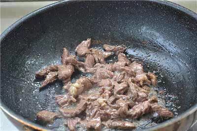 锅中倒入些油炒熟姜末牛肉盛出。16