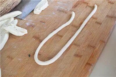 4:在第二次醒的时候建议是每根上面都蘸满油醒,因为这样醒后好拉长面条。