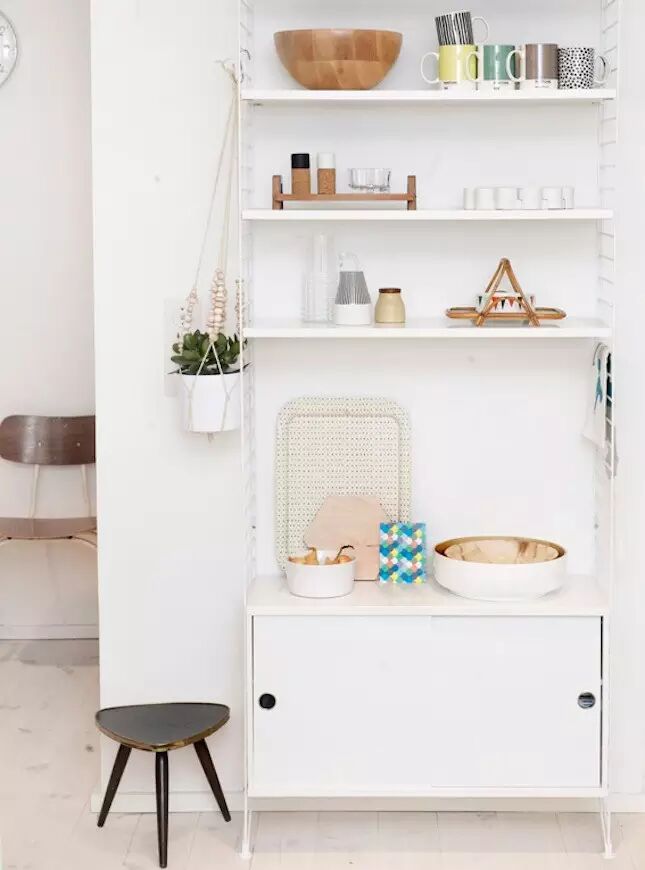 死角装饰可来劲了,植物,书本,圆桌都让这死角立马活泼起来,L形的架子在角落空间可是非常实用的。