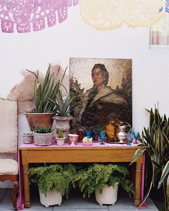植物并不是总是要放在桌子上,在空间每个角落都有可能成为它的安置处,桌底下的大盆栽弥补了暗处的不足又增添了色彩。