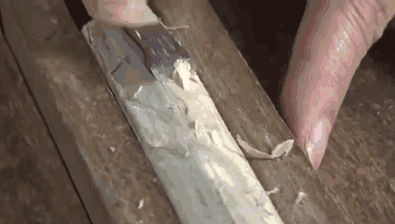 首先, Nobuo将旧书脊上的胶水全部刮掉: