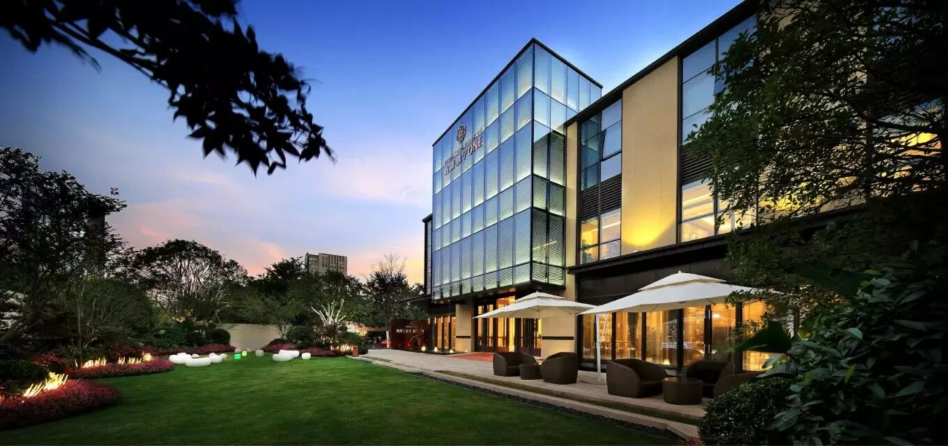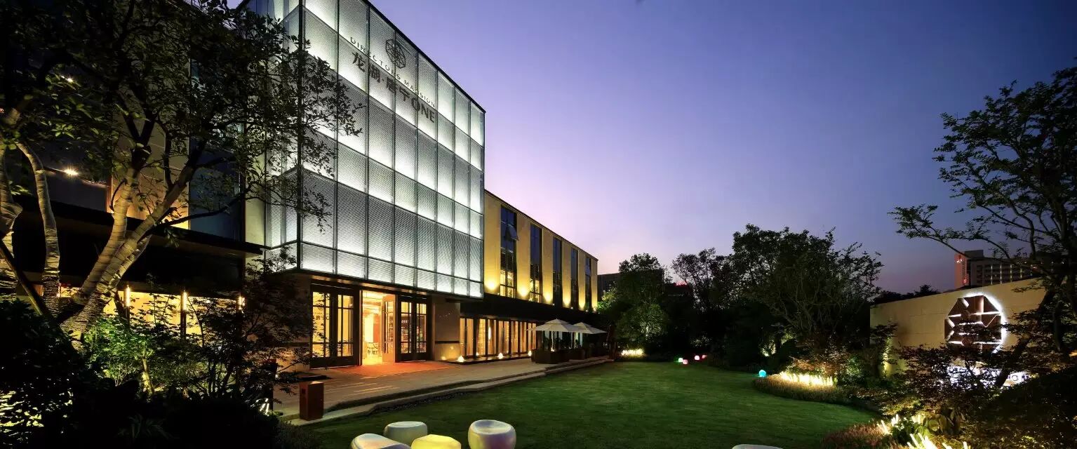 杭州.龙湖唐宁ONE的示范区场地在摆放售楼部后留下东西宽20米左右,南北长60米左右的一个狭长空间里. 售楼部前期作为售楼使用,后期会成为商业, 大面积景观将成为永久的设计, 这两点与目前大多数开发的地产项目有较大差异,且在市场动荡的大环境下,对设计顾问方有相当的挑战性. 示范区场地与外界打开的边界为南侧的市政道路,但对面商业氛围较为杂乱;与楼盘强调的豪宅质量有一定的冲突;而东侧为城市河道,河道两侧有较为理想的绿植环境,但良好的城市绿地会把售楼部大面积遮挡,仅仅留下部分外露, 不利于场地的对外展示.东侧过了河道则为更为繁华的都市车道(西侧为旅店旧楼,外立面较为陈旧);项目的先天环境被杂乱旧楼和绿植包围以及售楼面积总量较小给设计师留下了较为深刻的印象,带着草图考察现场后基本有了进一步的深入思路. 于是慢慢提出 ”对城市环境的顺势,不献媚,最简洁,纯净,直接的手法,为轻奢豪宅提出最直接的表达,苛求细部,寻求更深层次体验的豪宅景观但却淡雅、轻松的呈现,形成都市度假式的豪宅典范!”的主题思路