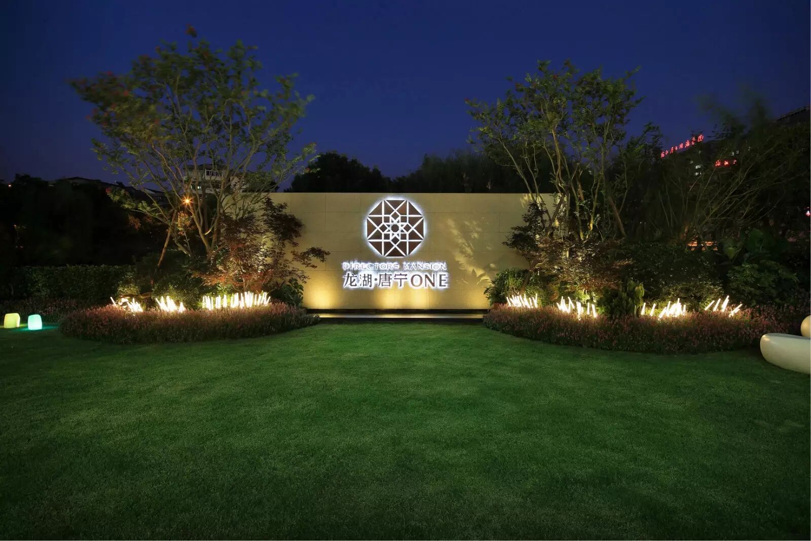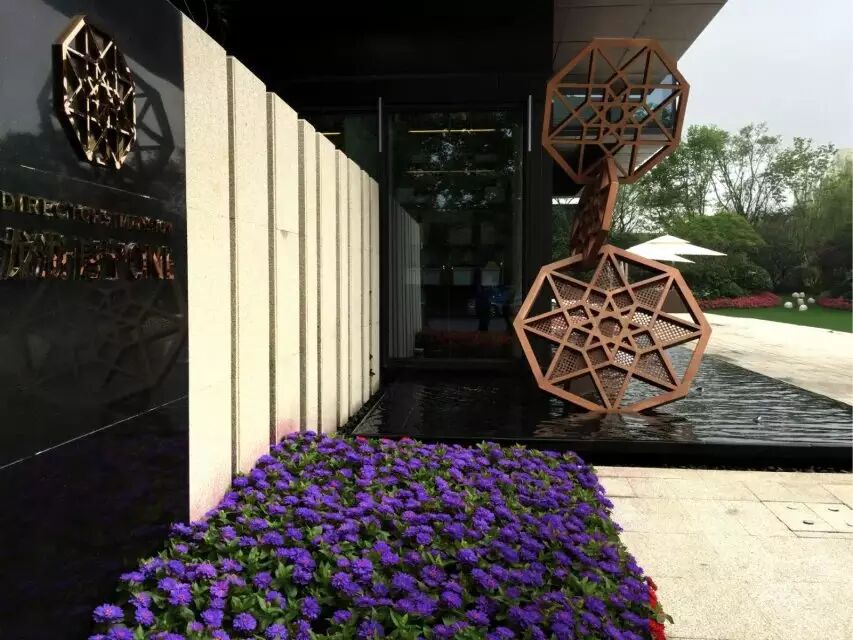 业主策划部的市场调研为我们提供了进一步的支持,未来购房者基本为已经居住过城西高档房屋业主的下一代,且有一定的海外旅游或学习经历和奢侈品消费经历, 在环境品味认知上有进一步的要求.而这一要求也一直是设计师想表达的内容,不希望过多重重石材的雕刻和繁琐细节装饰以凸显尊贵;在前两种手法的延伸下,透过都市度假式酒店的氛围来进一步细化院子,于是在被绿墙包围的极简 “高墙”下通过晶莹朦胧的白色小品安静躺在开场的台阶草地上表达出具有空间穿透力的景观, 尽量通过非常简单但宽宽的系列 “高墙”和绿墙来屏蔽南侧和西侧的杂乱街道,通过“大院”来扩大进深而形成令人印象深刻的从嘈杂都市环境中进入静谧的庭院仿佛全世界一下安静下来的感受!保持持续性的心理尖叫!这些实景既应对了未来买家要求厚重的尊贵豪宅感受,又体现了轻松雅致的品格格调!