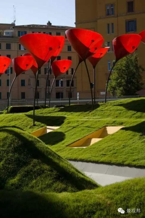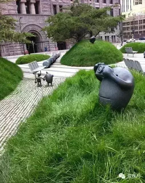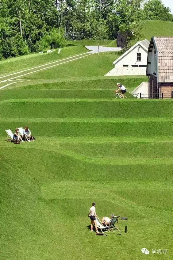 “几何造型堆坡”是在园林绿地范围内做地型的起伏状况。在造园工程中,适宜的微地形处理有利于丰富造园要素、形成景观层次、达到加强园林艺术性和改善生态环境的目的。在现代景观设计中运用广泛!