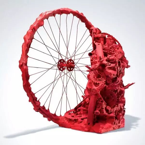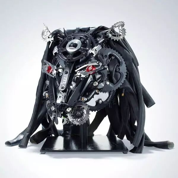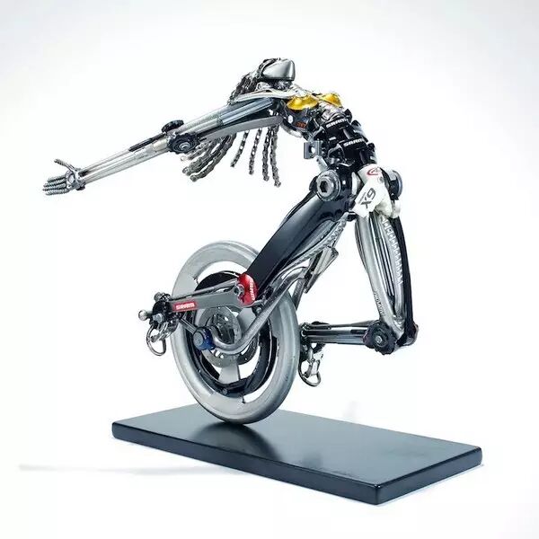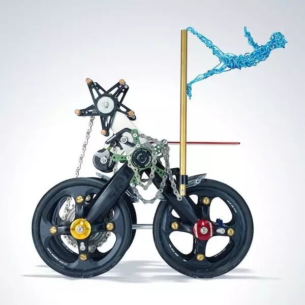 “ 这一个个天马行空充满未来感的艺术品都是用废旧自行车零件拼砌而成,创作者丰富的想象力是在令人佩服。
