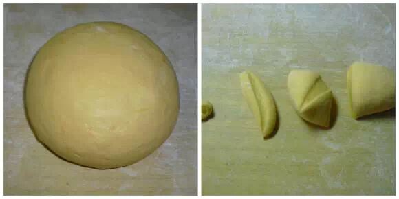 1、面粉中加入酵母、白糖和温水和成面团,饧15分钟。分割成每个50克的剂子。