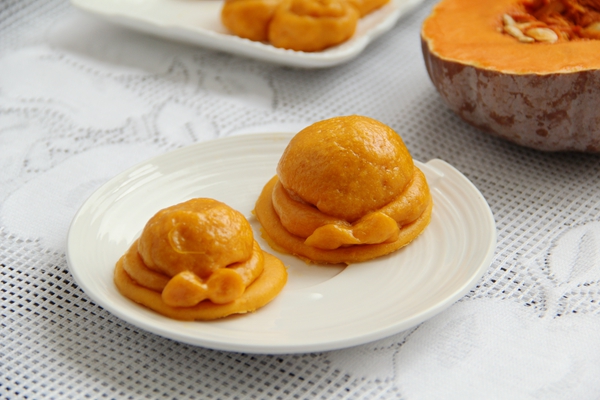 1.南瓜去掉外皮,切片蒸熟后用勺子压成泥。