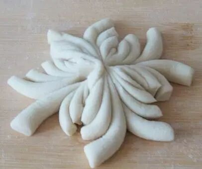 6、用刀把四个角切开,稍加整理旧好了和馒头一起上锅就好了。