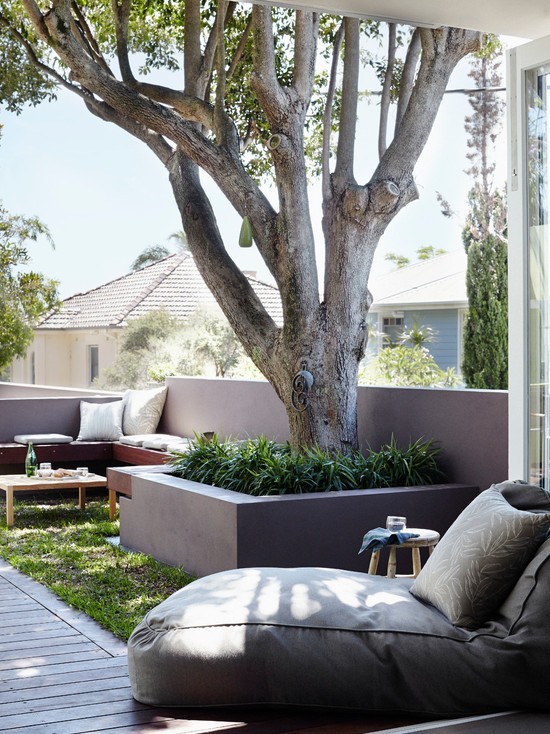 清新的草香味带来一种轻松而温馨庭院空间,长长的椅子有矮墙做靠背,在这里阅读、午睡或阅读都是极好的。
