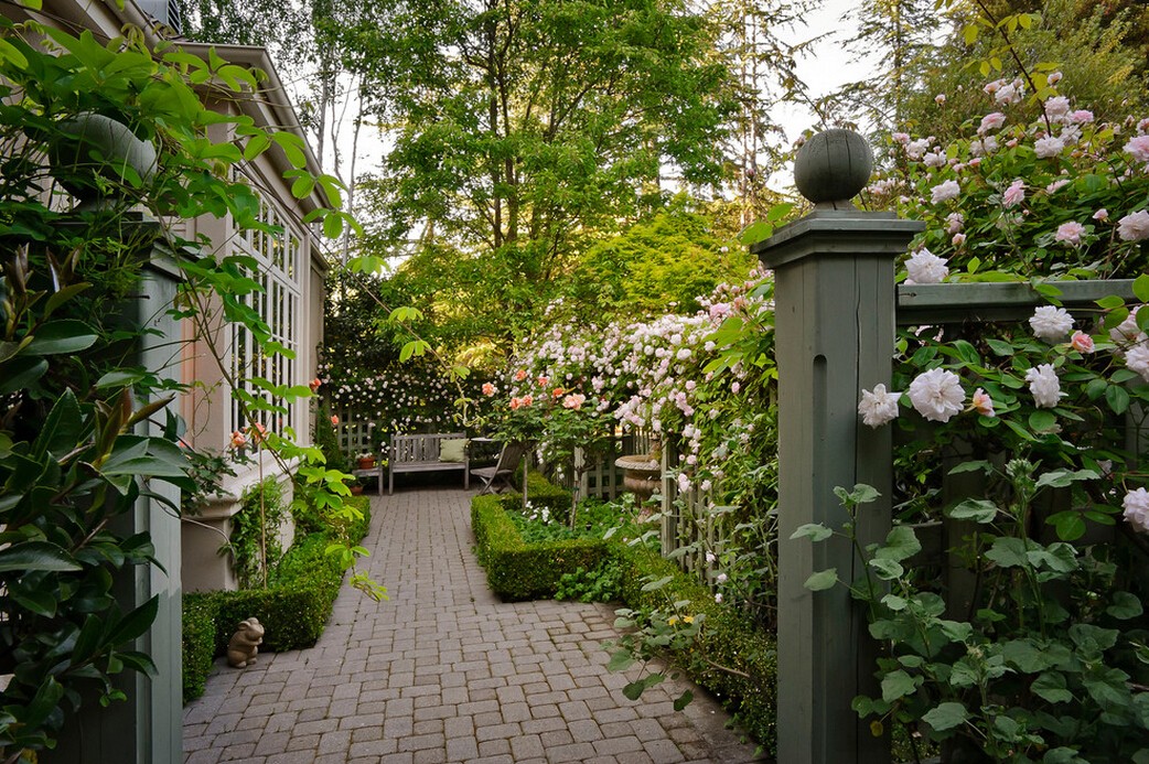 这位园林设计师创造一个迷人的后花园空间,植物被精心安排作为庭院的一小部分,往里看是一个小小的休息区,设计师在这里还添置了一个凸起的户外餐饮空间,沿着楼梯走,舒适的长椅坐着躺着任你选,走道两边夹杂着休息区和小花园,不太大的空间感觉出奇的宽敞。