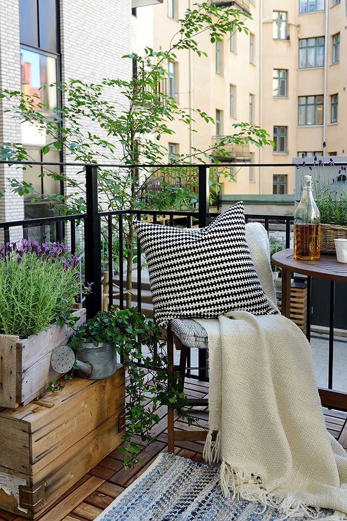 在城市每一块空间都应该巧妙利用,素雅的阳台在绿色植物的包装下显得格外优雅。