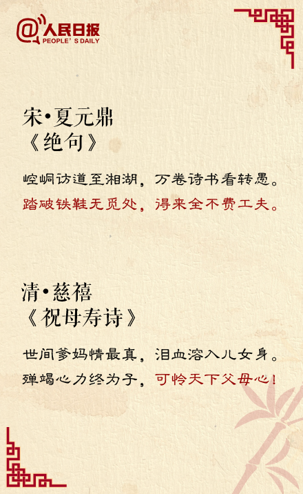 有缘千里来相会、不爱江山爱美人、百无一用是书生、一寸光阴一寸金、今朝有酒今朝醉、满城尽带黄金甲、可怜天下父母心、男儿有泪不轻弹……这些耳熟能详的句子,你知道在哪些诗词里出现过吗?戳图学习↓↓肯定有你不知道的!