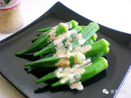 2) 在研钵里把豆腐和调味料磨匀再加入秋葵拌匀即可。