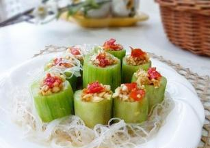 猪肝切片用料酒盐淀粉抓好,黄瓜切片,也可以放辣椒,姜蒜切的碎碎的~要很多。