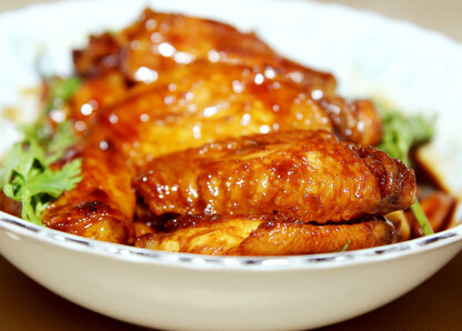 还有烤鸡翅,其实很快,如果有烤箱的话~开水里煮三分钟去血沫,捞出来刷酱,扔烤箱十五分钟,这个十五分钟足够再做一个菜的了,很划算哦~